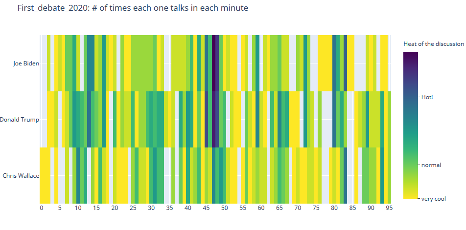 | Heatmap: Visualize the crosstalks during the debates: debate 1 | debate1: 13, debate 2: 7 |