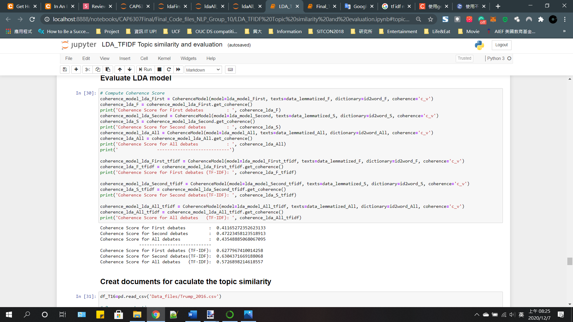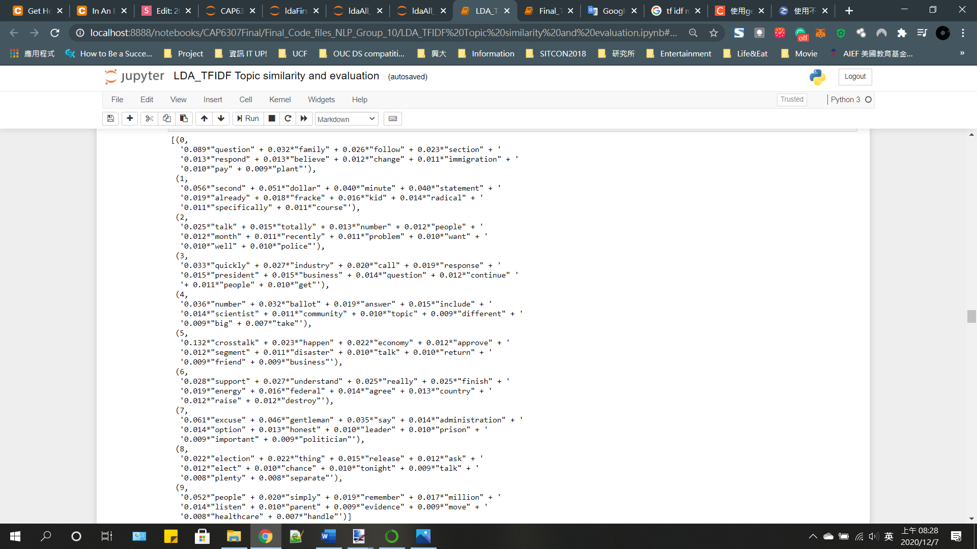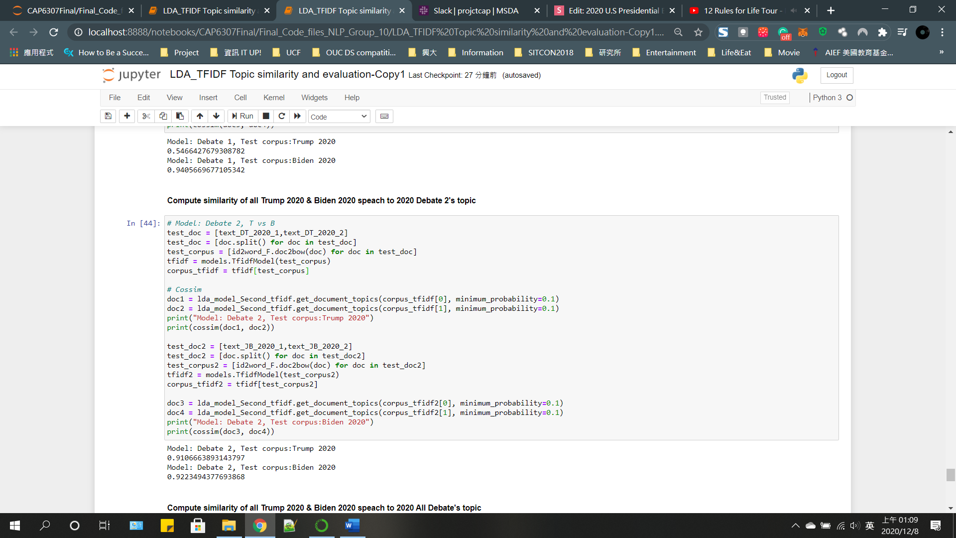 | 7. How does the similarity between President Trump's speech during 2020 and 2016? | TF-IDF, LDA model |