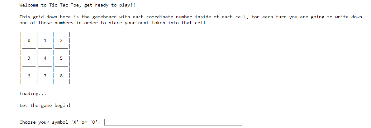 - Each turn human player must input the number of the cell where he wants to place each token.