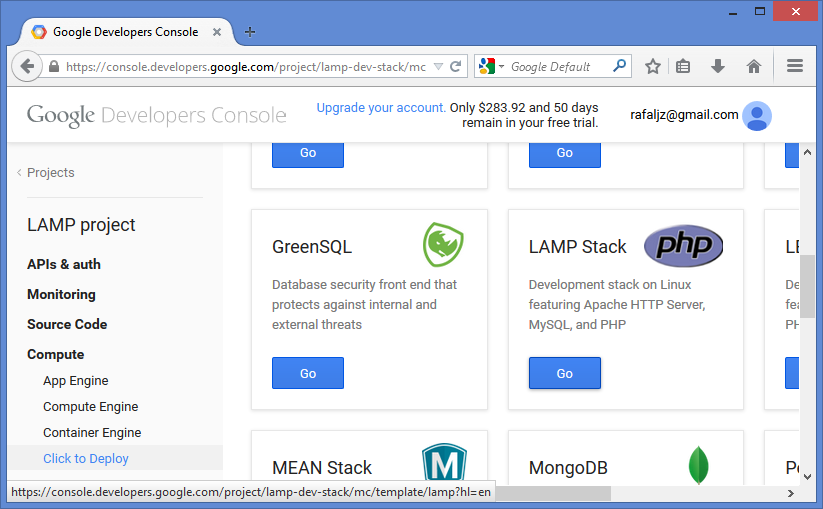 Deploy popular open stacks on Google Compute Engine via Google gallery.