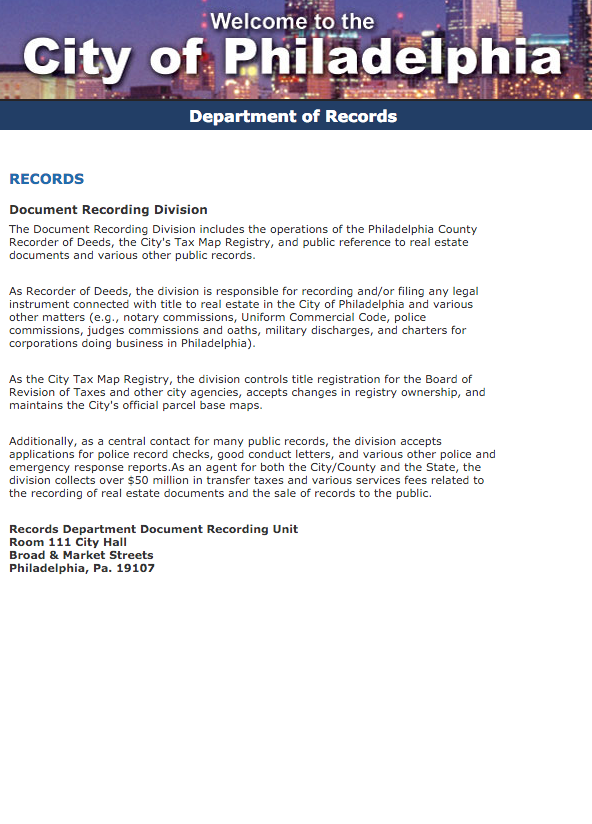 In Philadelphia, parcels and properties are recorded by separate departments.