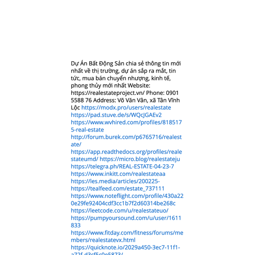 Website: https://realestateproject.vn/ Dự Án Bất Động Sản chia sẻ thông tin mới nhất về thị trường, dự án sắp ra mắt, tin tức, mua bán chuyển nhượng, kinh tế, phong thủy mới nhất Phone: 0901 5588 76 Address: Võ Văn Vân, xã Tân Vĩnh Lộc