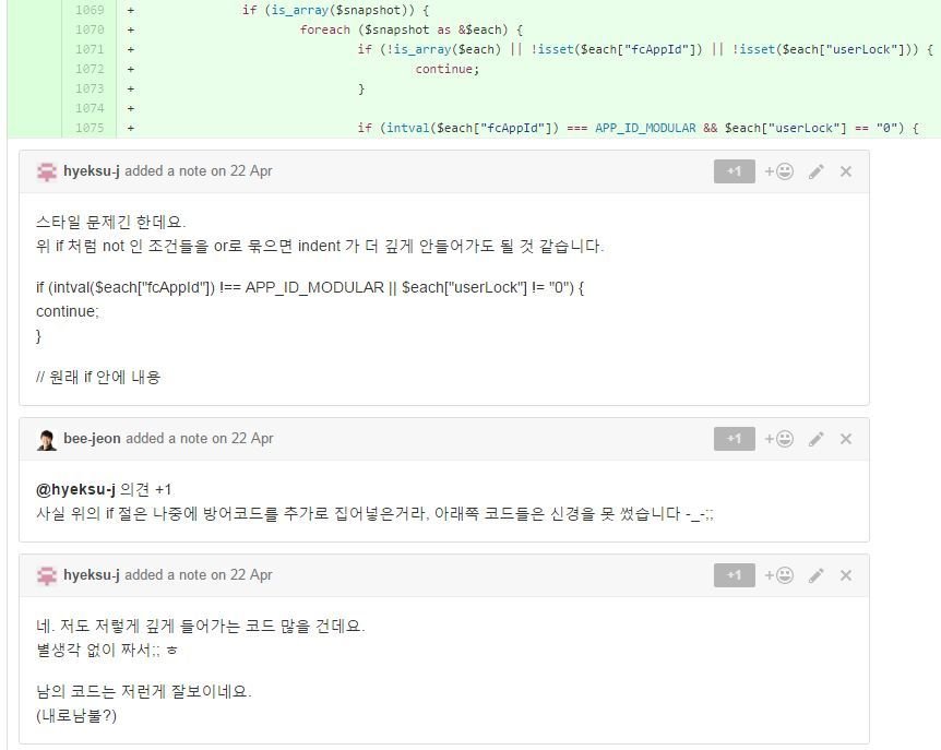 리뷰 받을 코드라고 생각하면 좀 더 신경쓰게 된다