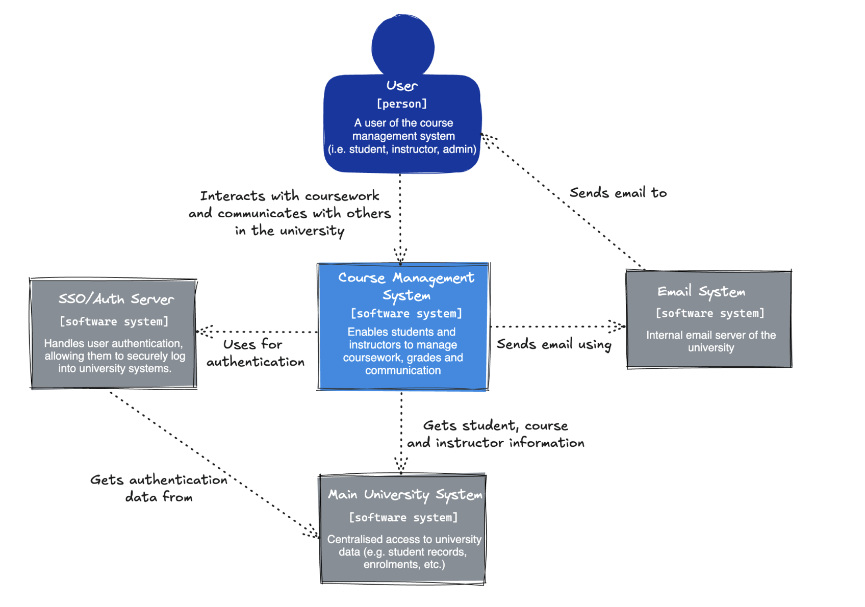 We can see the external users and systems represented as the different countries