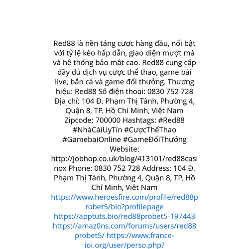 Website: http://jobhop.co.uk/blog/413101/red88casinox Red88 là nền tảng cược hàng đầu, nổi bật với tỷ lệ kèo hấp dẫn, giao diện mượt mà và hệ thống bảo mật cao. Red88 cung cấp đầy đủ dịch vụ cược thể thao, game bài live, bắn cá và game đổi thưởng. T