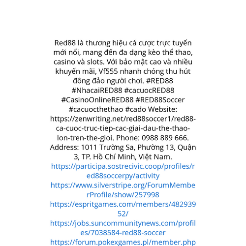 Website: https://zenwriting.net/red88soccer1/red88-ca-cuoc-truc-tiep-cac-giai-dau-the-thao-lon-tren-the-gioi. Red88 là thương hiệu cá cược trực tuyến mới nổi, mang đến đa dạng kèo thể thao, casino và slots. Với bảo mật cao và nhiều khuyến mãi, Vf555