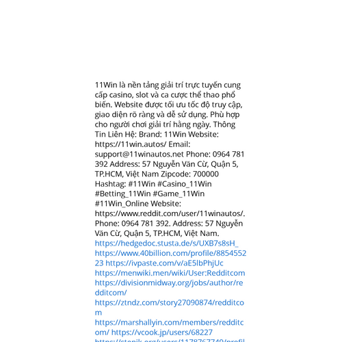 Website: https://www.reddit.com/user/11winautos/. 11Win là nền tảng giải trí trực tuyến cung cấp casino, slot và ca cược thể thao phổ biến. Website được tối ưu tốc độ truy cập, giao diện rõ ràng và dễ sử dụng. Phù hợp cho người chơi giải trí hằng ngà