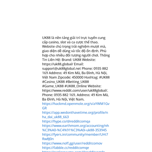 Website: https://www.reddit.com/user/uk88global/. UK88 là nền tảng giải trí trực tuyến cung cấp casino, slot và ca cược thể thao. Website chú trọng trải nghiệm mượt mà, giao diện dễ dùng và tốc độ ổn định. Phù hợp cho nhiều đối tượng người chơi. Thô