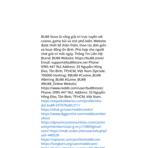 Website: https://www.reddit.com/user/bu88store/. BU88 Store là cổng giải trí trực tuyến với casino, game bài và slot phổ biến. Website được thiết kế thân thiện, thao tác đơn giản và hoạt động ổn định. Phù hợp cho người chơi giải trí mỗi ngày. Thông