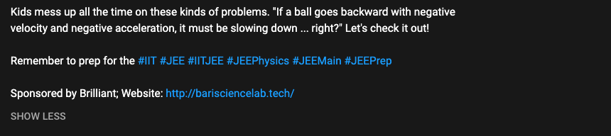 - Put IIT JEE & CSE & SAT & SHSAT in titles and #JEE #CSE #SAT #SHSAT to capture Youtube Algorithm's attention. Put 6-10 tags per video! Customize each description with a one-line sentence!