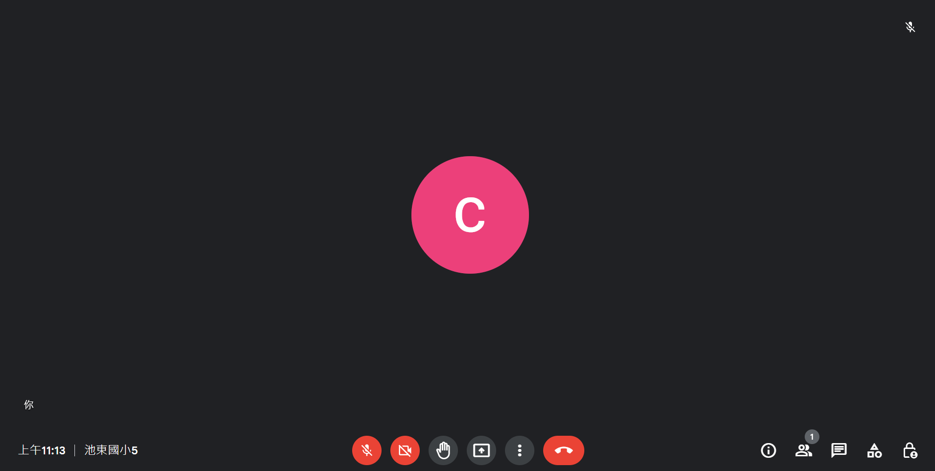 麥克風、攝影機、舉手、分享螢幕、設定、離開通話