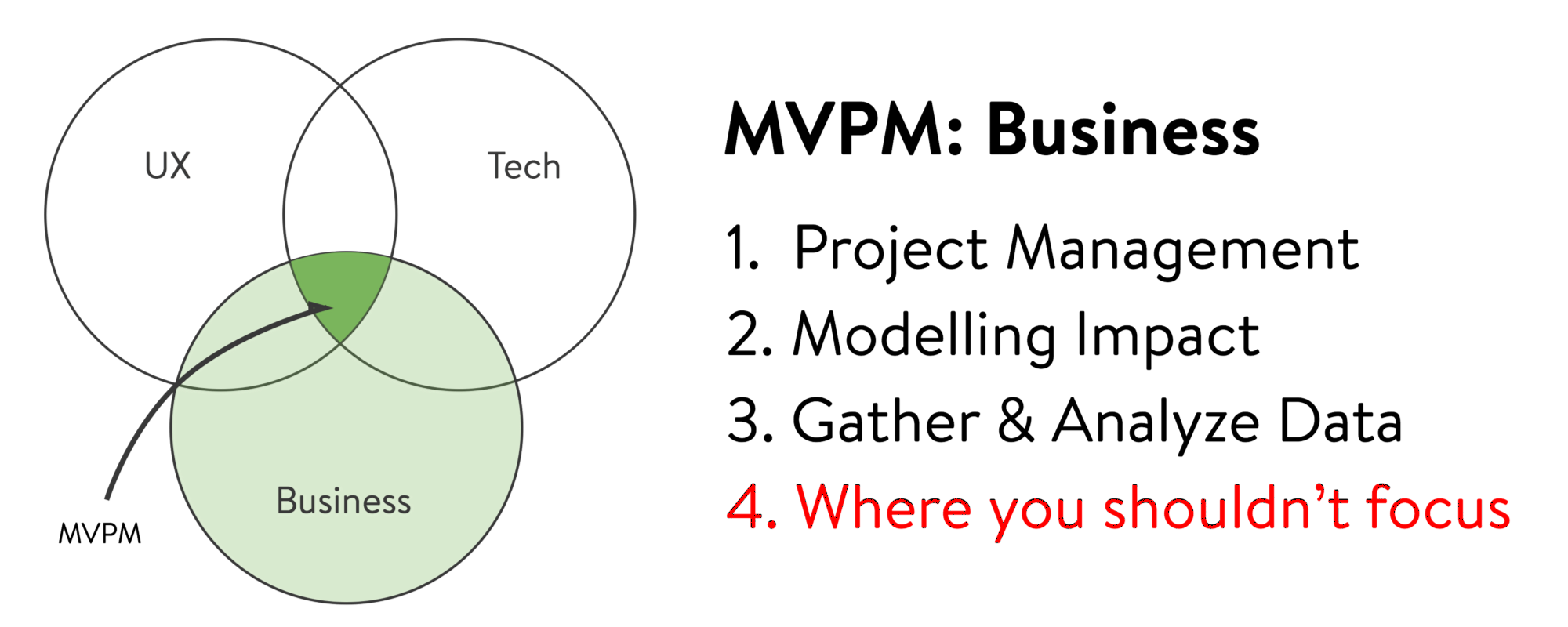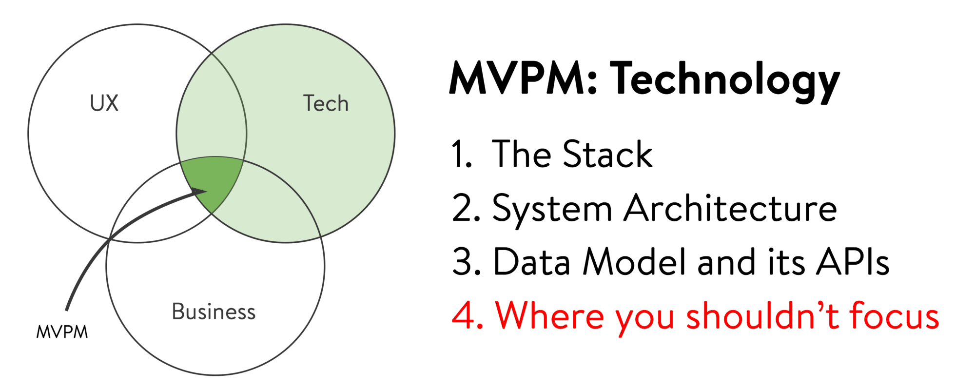 - Make sure that your product has enough potential to make it worth doing (potential value vs. development + maintenance)