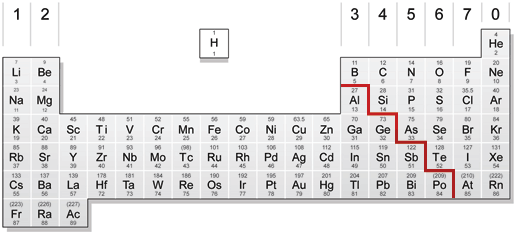 The zig-zag line in this diagram separates the metals, on the left, from non-metals, on the right. Hydrogen is a non-metal but it is often put in the middle.