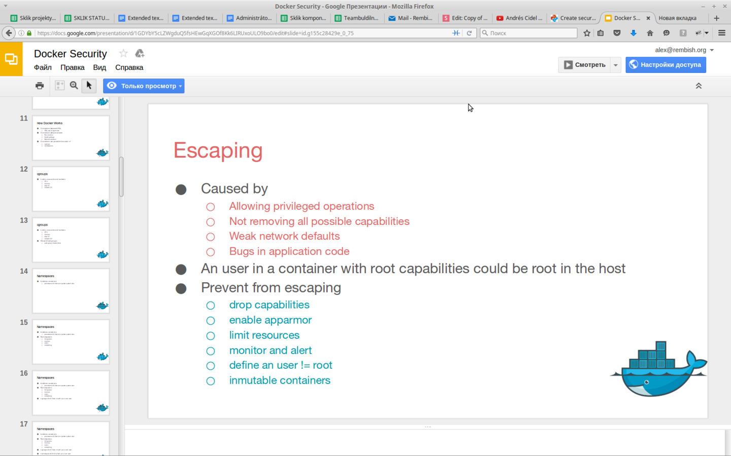 Avoid providing access to the Docker user or the Docker group