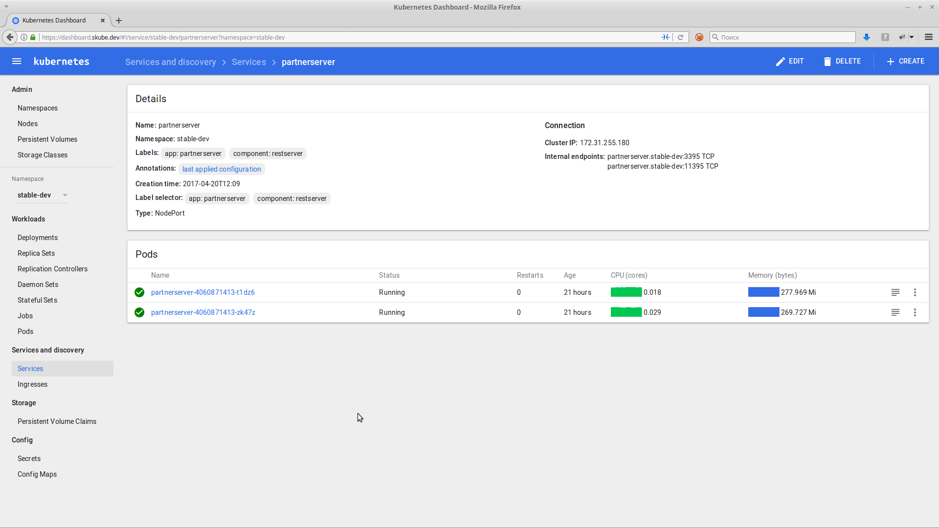 Inside K8S (another namespace): http://partnerserver.stable-dev:3395/v1