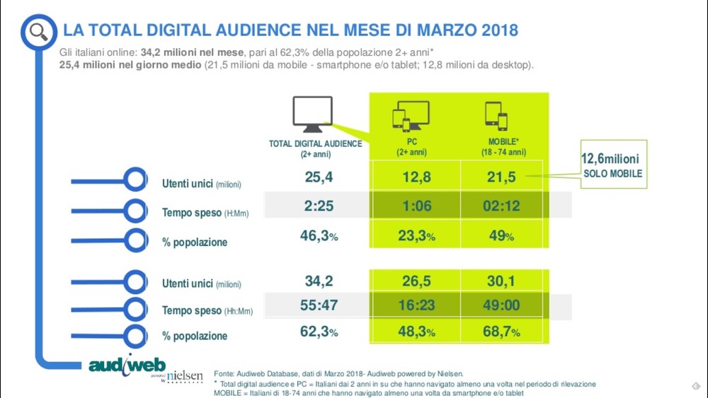 In una giornata media ci sono stati almeno 25,4 milioni di utenti unici, che hanno navigato in media 2 ore e 25 minuti a testa.
