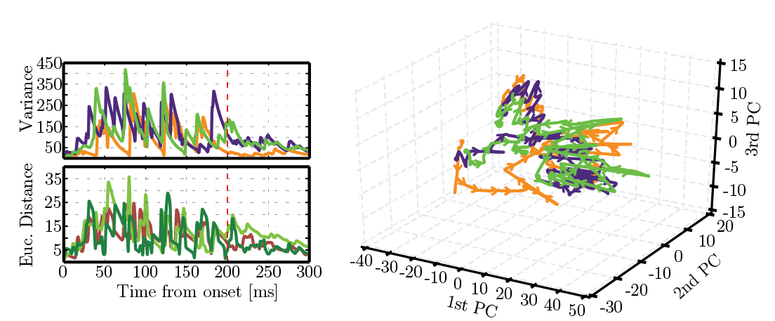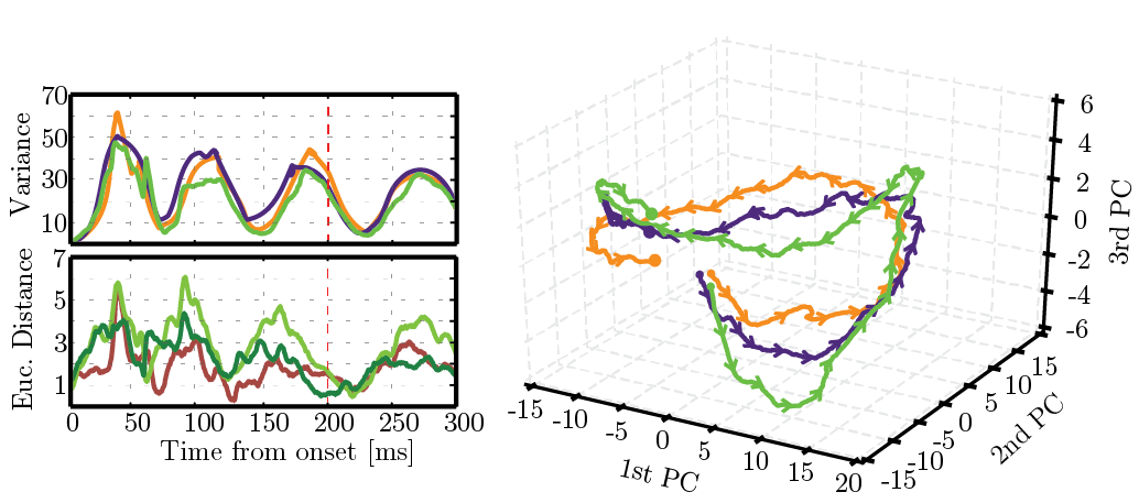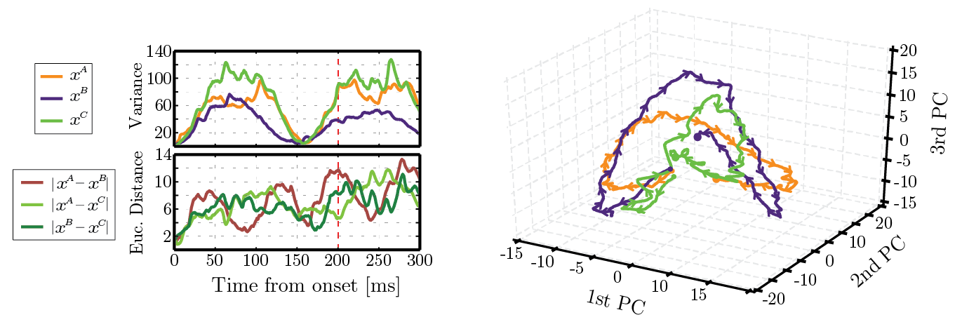 - Stimulus-specific responses evolve through bounded, reproducible trajectories