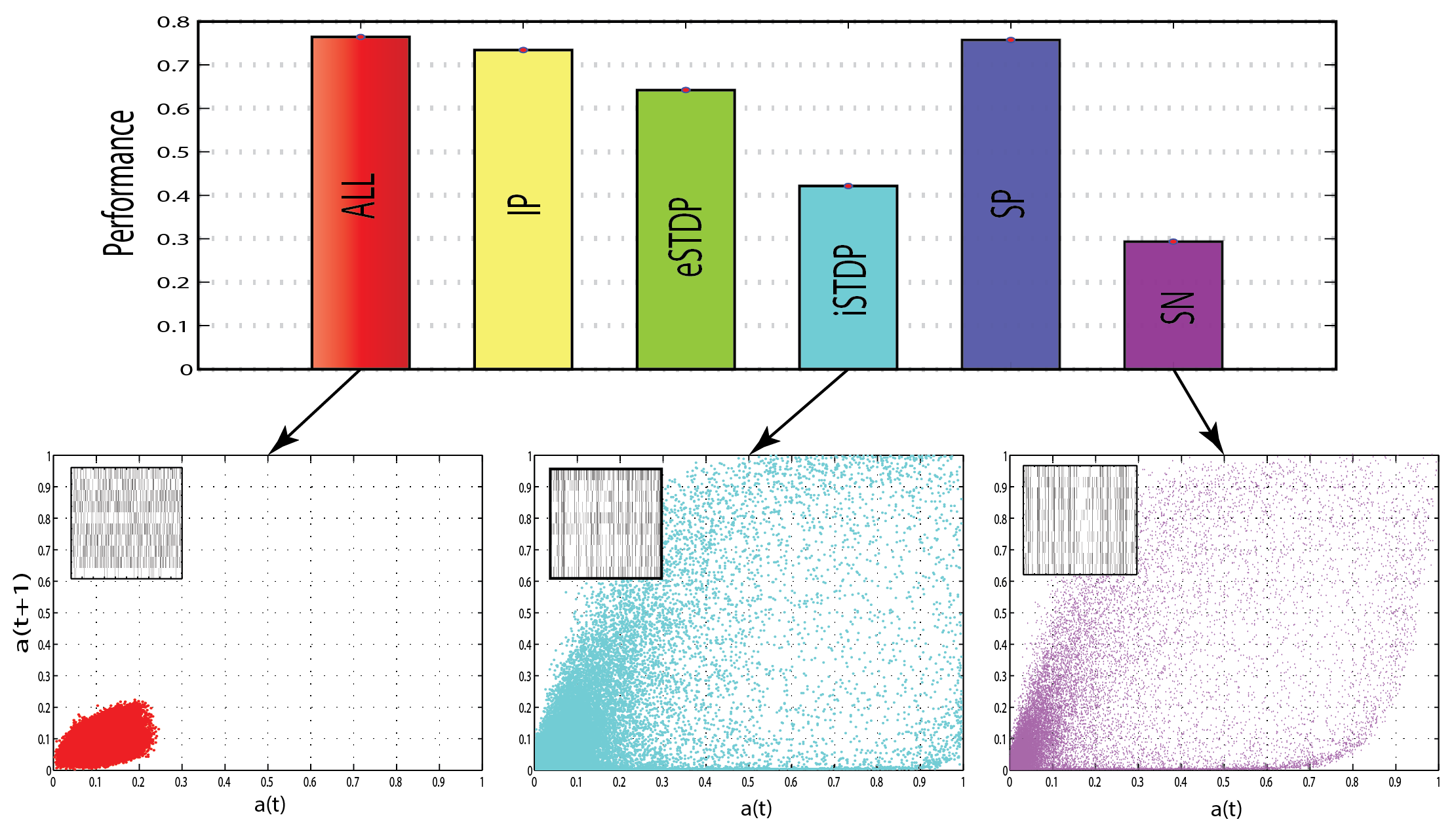 - Plasticity (iSTDP) acts by maintaining sparse, distributed activity patterns (AI)