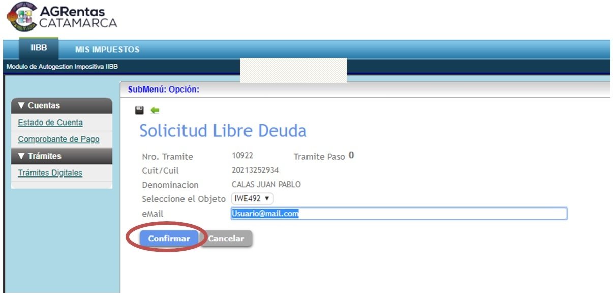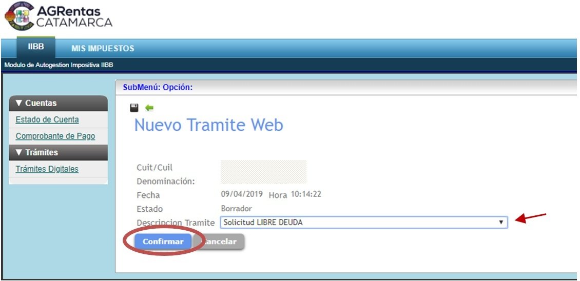 ‘Solicitud de LIBRE DEUDA’ y Confirmar