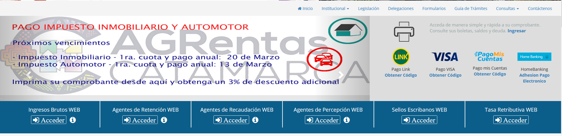 En el sitio oficial de la Administracion General de Rentas https://www.agrentas.gov.ar, hacer clic en la opción que se indica a continuación