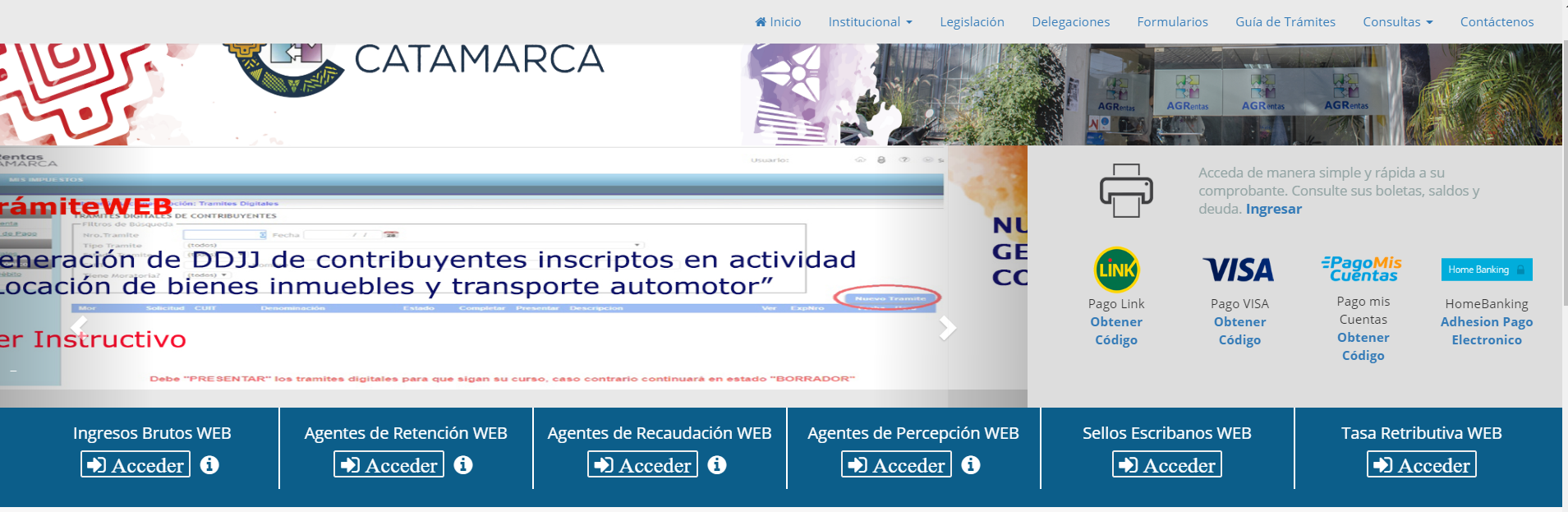 En el sitio oficial de la Administracion General de Rentas https://www.agrentas.gov.ar, hacer clic en la opción que se indica a continuación