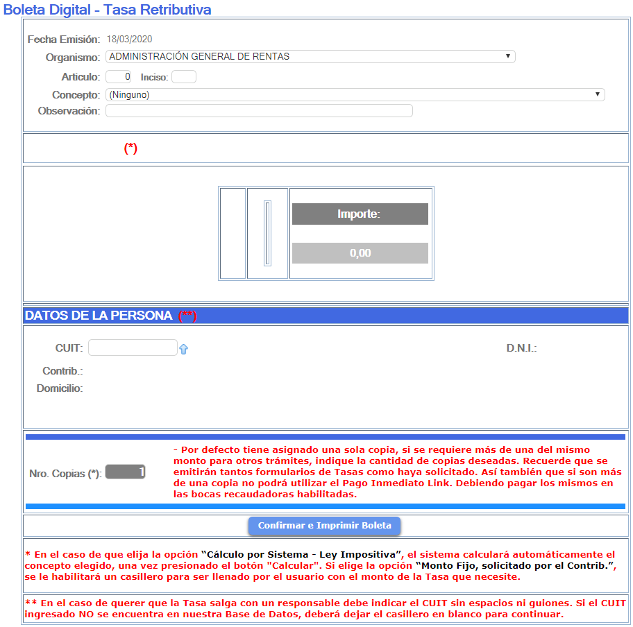 En el caso de que la tasa sea un valor porcentual se pondrá la Base Imponible del Instrumento y el sistema calculara según lo establezca la Ley.