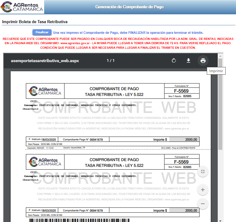 Se podra imprimir y abonar en RapiPago, PagoFacil, Cobro Expres