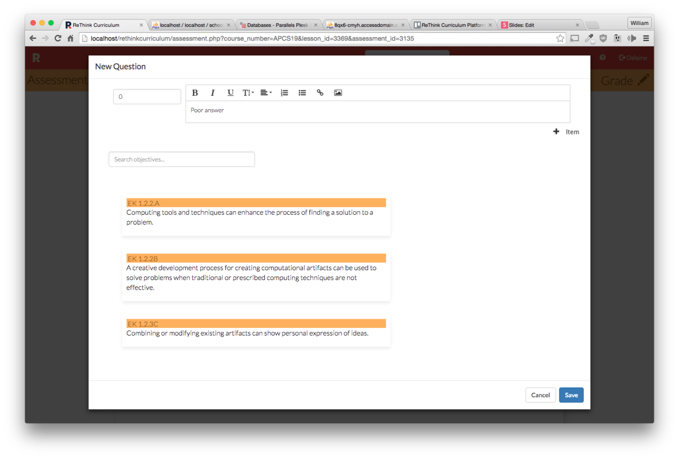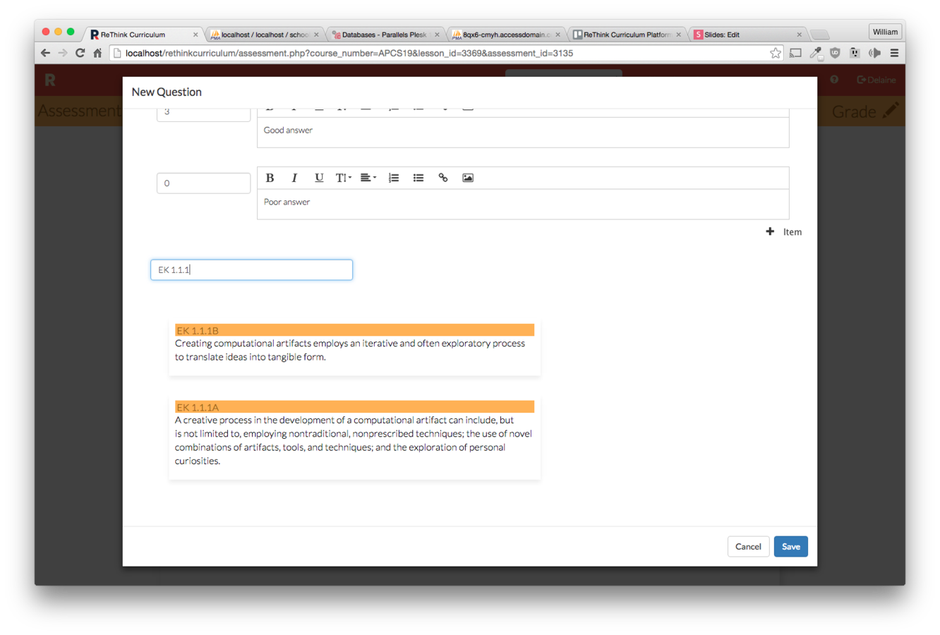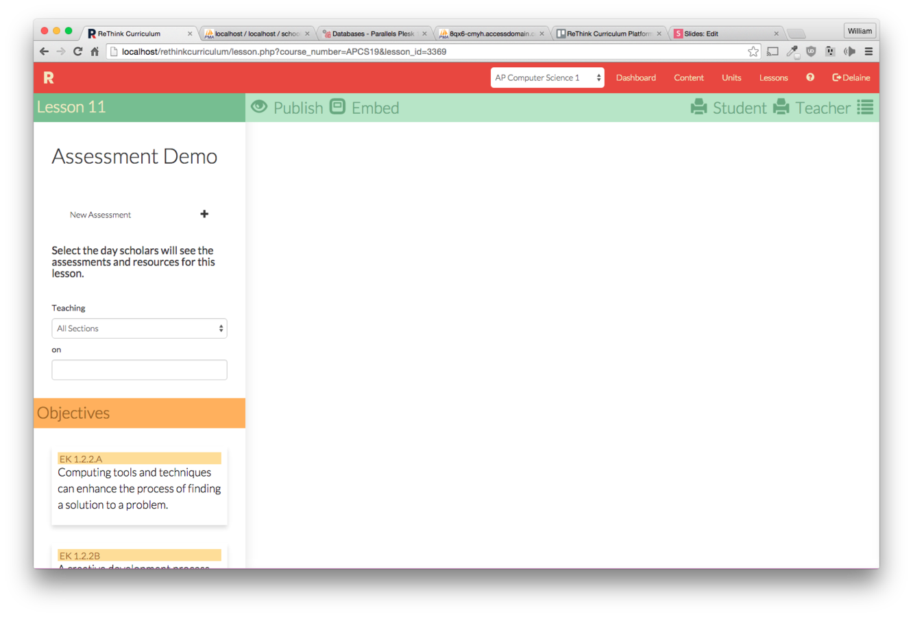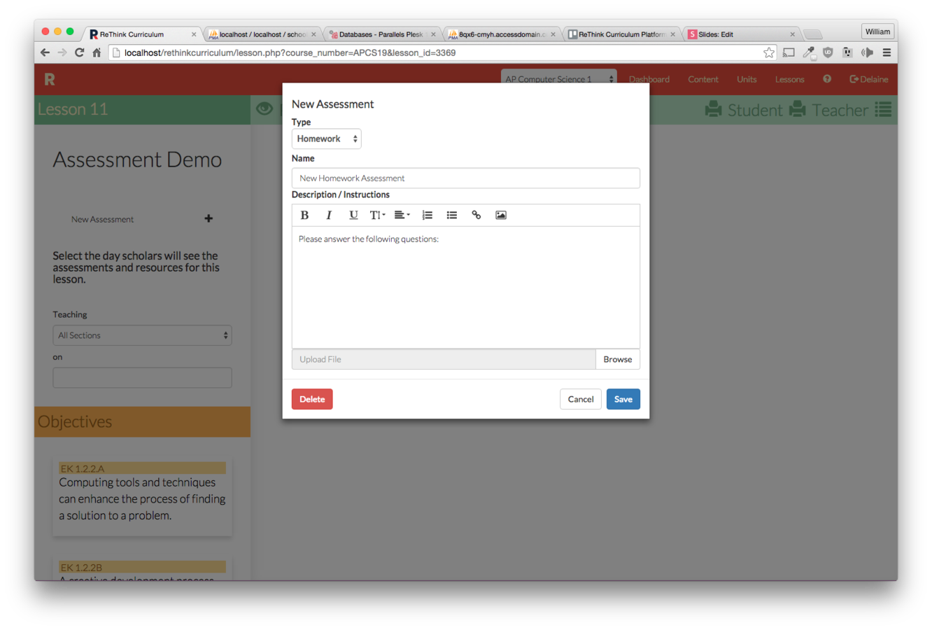 Click the "New Assessment" button on the lesson you wish to make an assessment for.