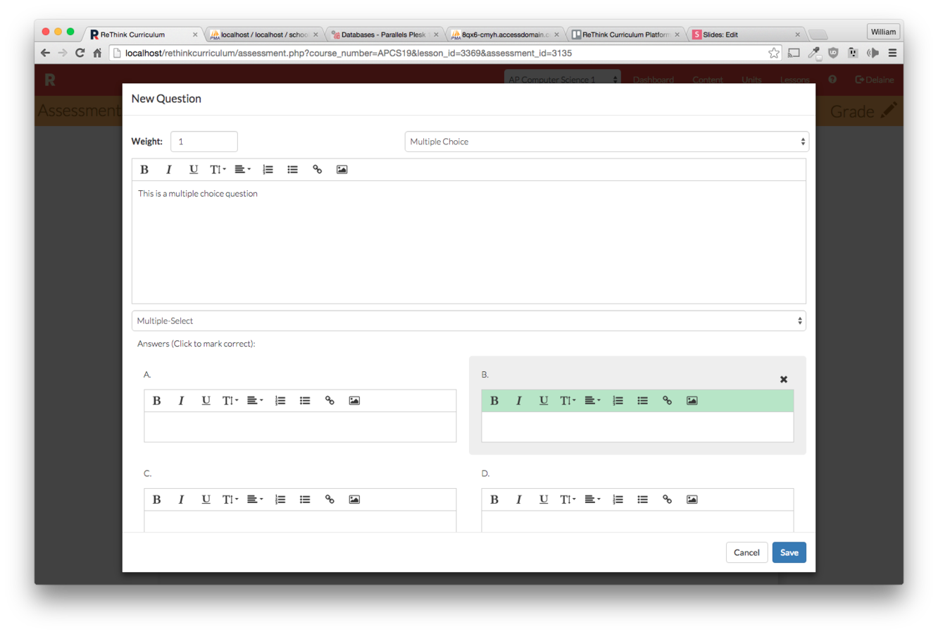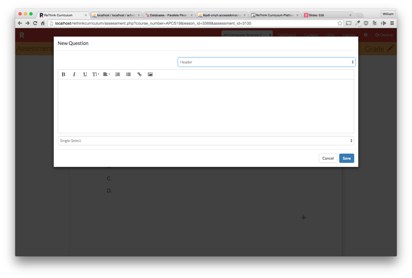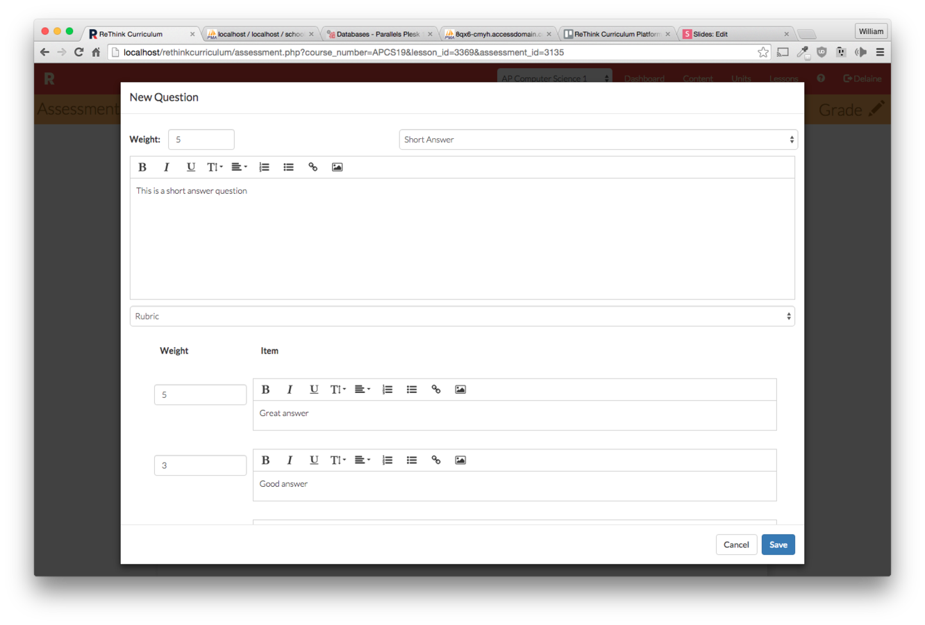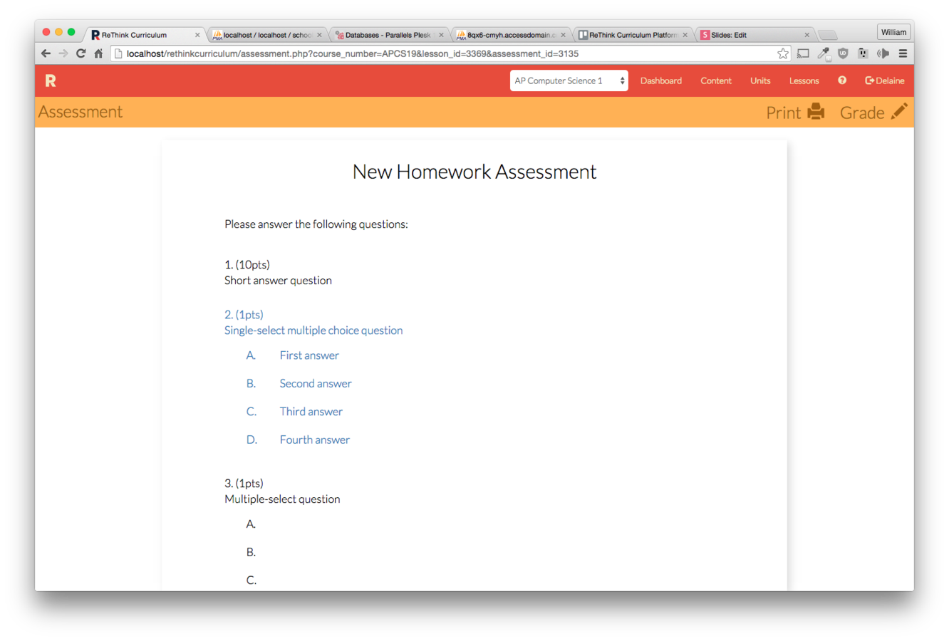 Click the "New Assessment" button on the lesson you wish to make an assessment for.