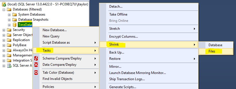 - Shrink Primary File Group