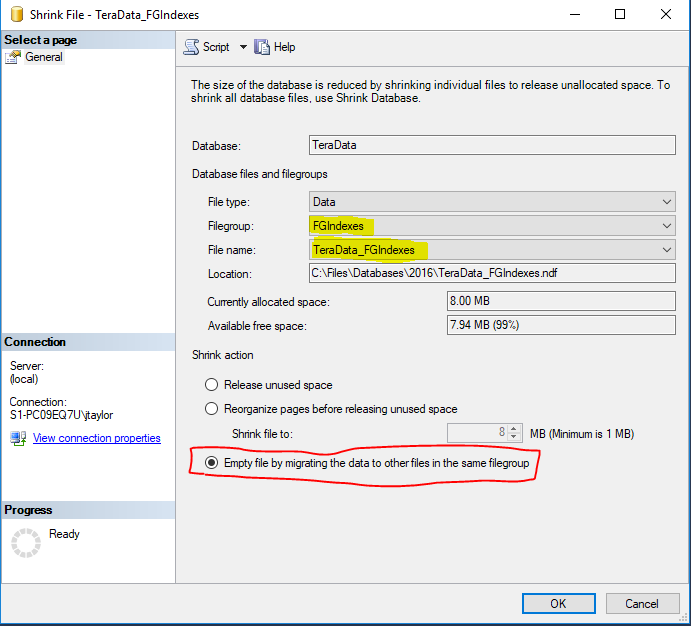 DBCC SHRINKFILE (N'MyDatabase_FGIndexes' , EMPTYFILE)