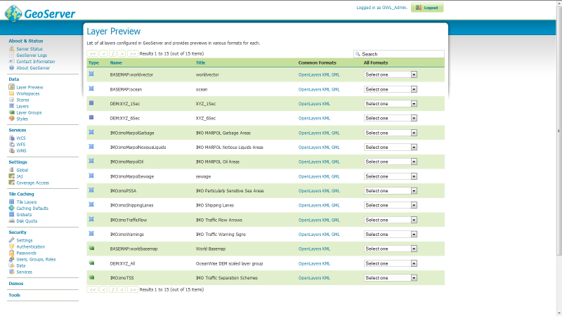 Ocean Database | GeoServer |OpenLayers