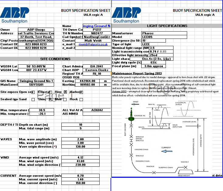 Asset Management data. Data sheets about Navaids can be entered into Ocean Database and published in the web service to the relevant port personnel or wider