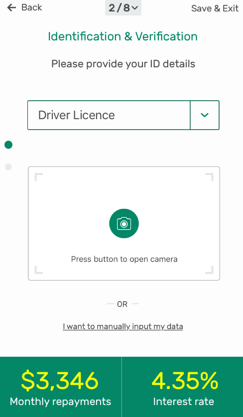 Create an MVP responsive prototype showing the end to end application process, including identity verification.