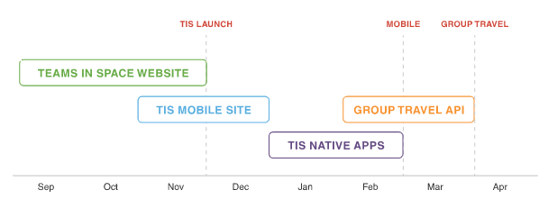 Veamos la hoja de ruta de un producto ficticio llamado Equipos en el Espacio.
