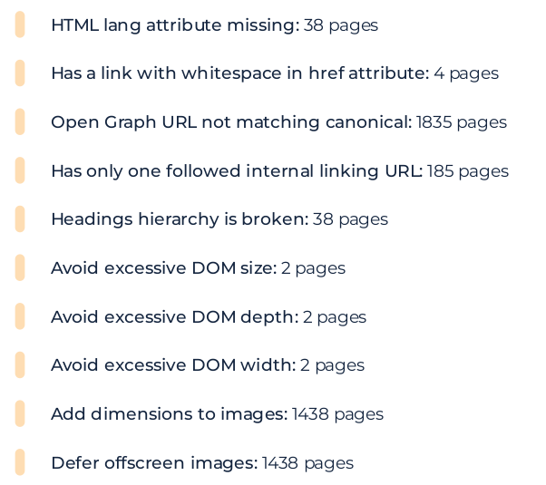 Hay tags H1 y H2 que comienzan en minúsculas; hay que arrancar los titulares con la primera letra en mayúscula.