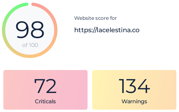 Incrementar las métricas de todo el site https://lacelestina.co por encima de un score de 90.