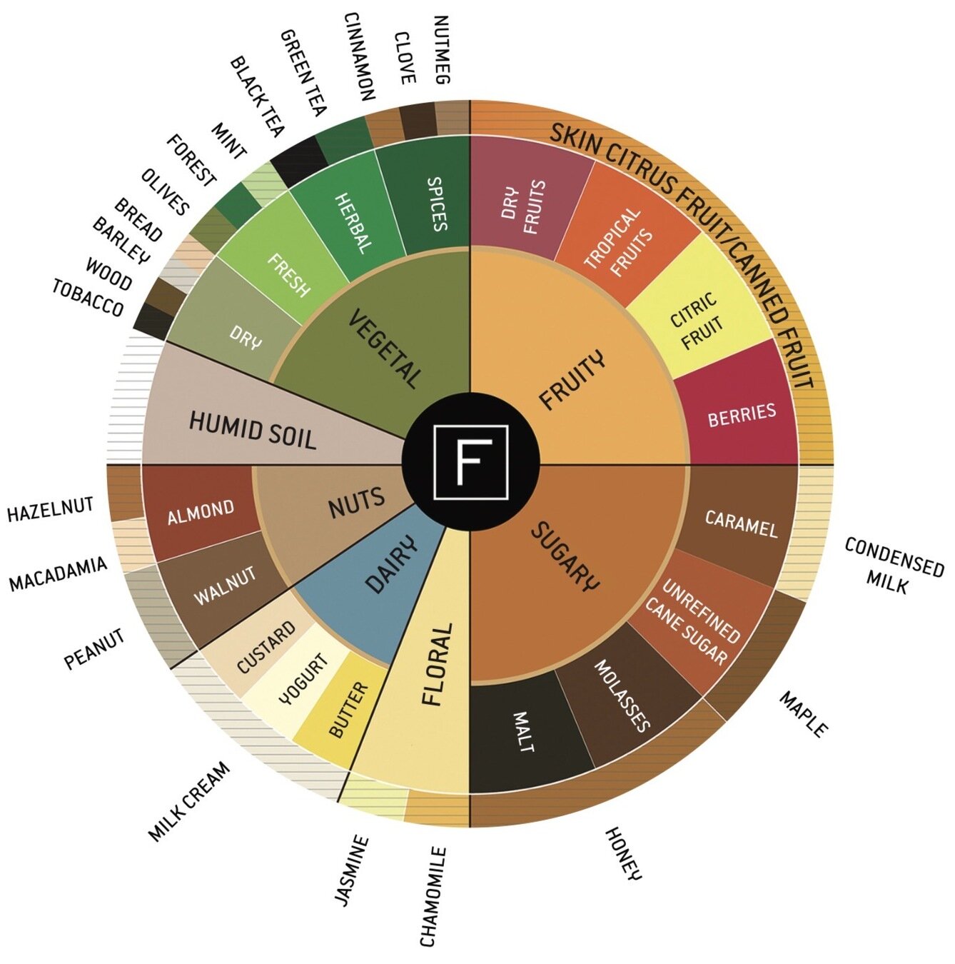Intense highly, Bitter and fruity notes, nutty, vainilla, spicy notes.