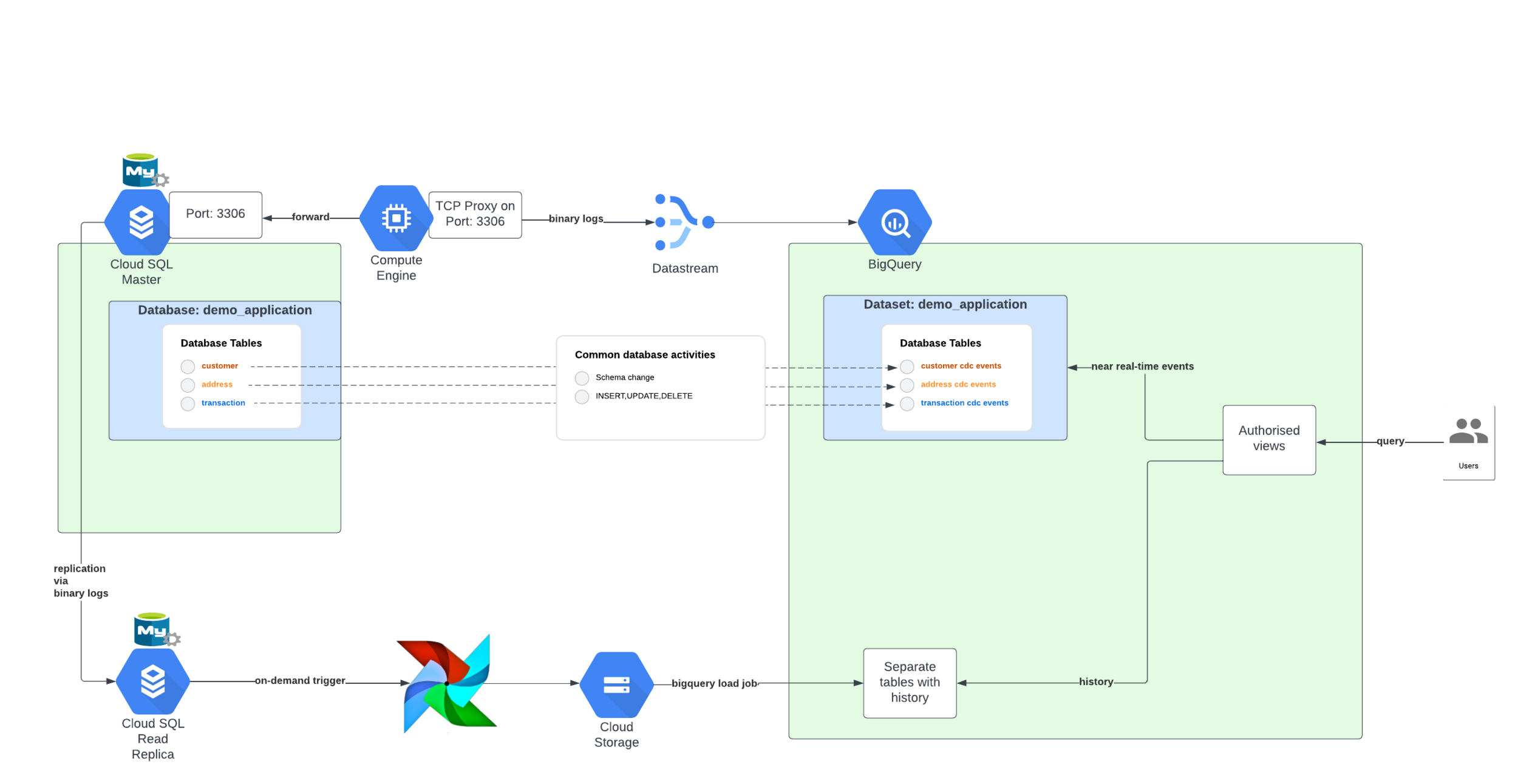 Replicate data from Cloud SQL to BigQuery in almost real-time