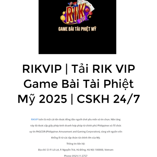 RIKVIP luôn là một cái tên được đông đảo người chơi yêu mến và tin chọn. Nền tảng này đã được cấp giấy phép kinh doanh hợp pháp từ chính phủ Philippines và Tổ chức uy tín PAGCOR Website: https://rikvipp.win/