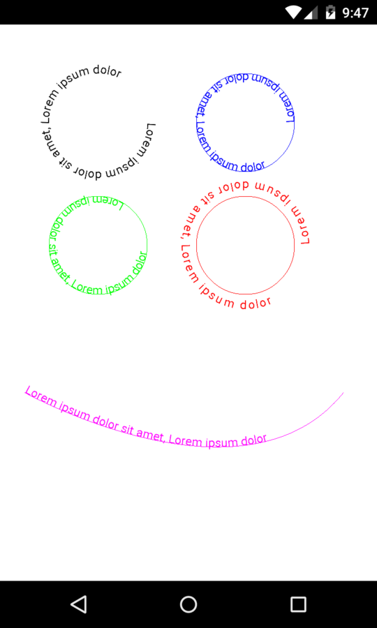 canvas.drawTextOnPath(TEXT, mPath, 0, 0, mTextPaint);