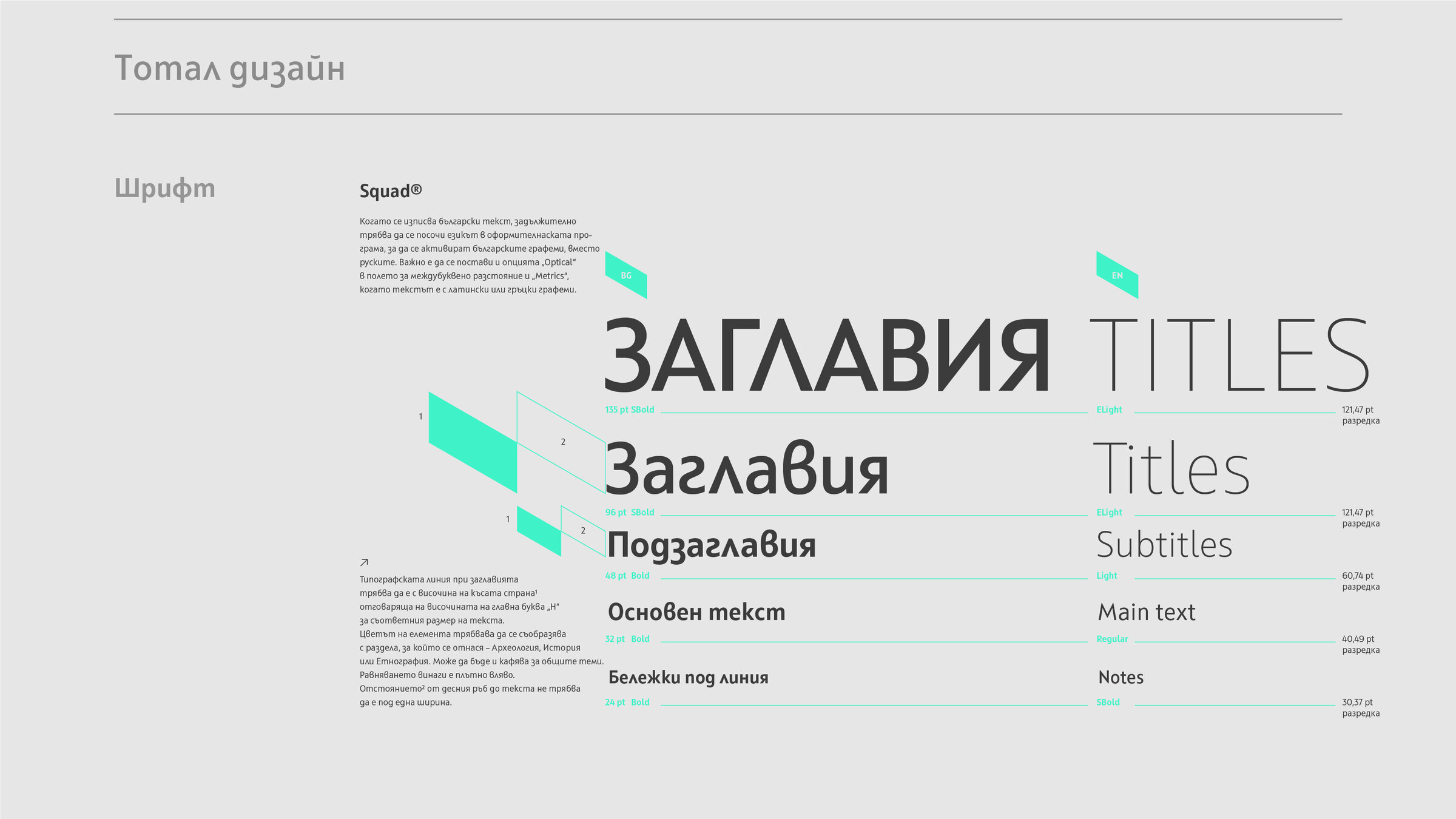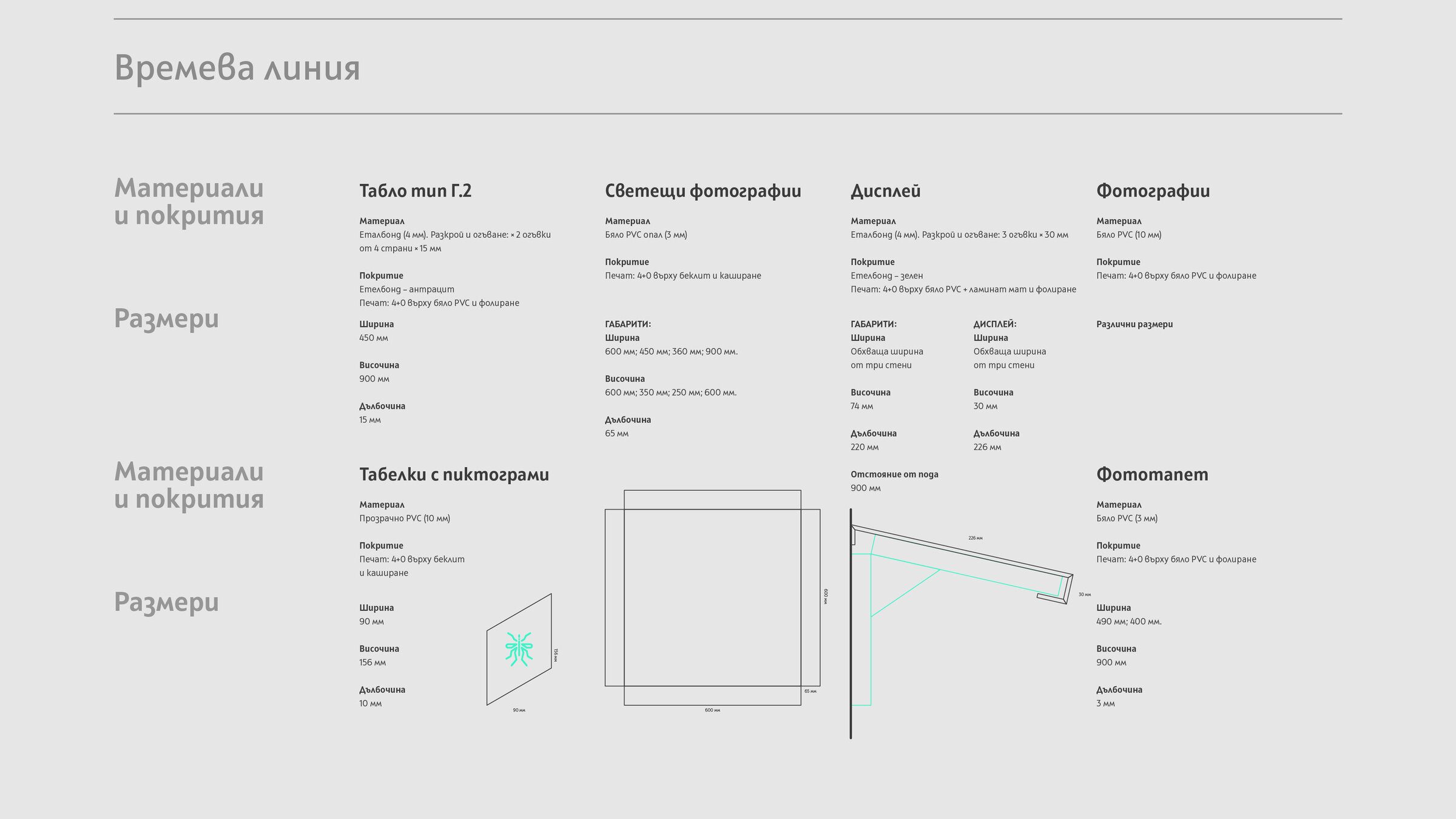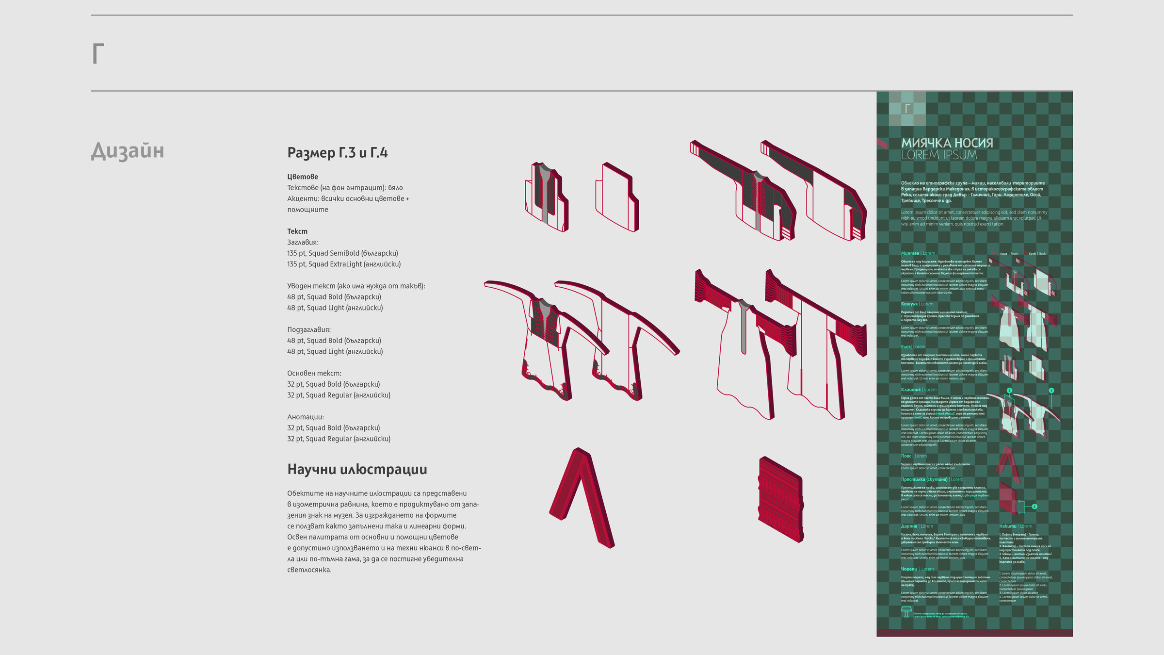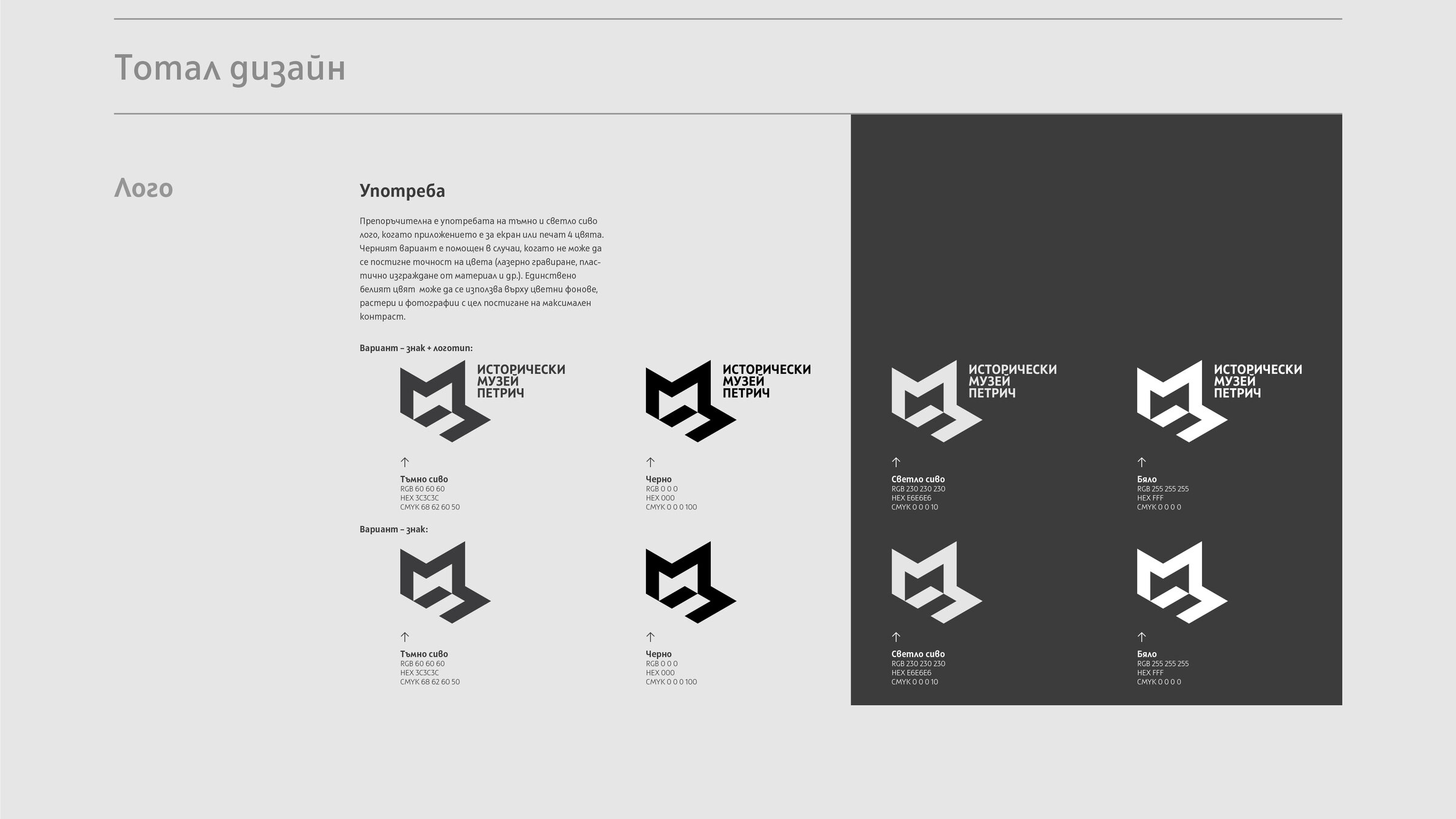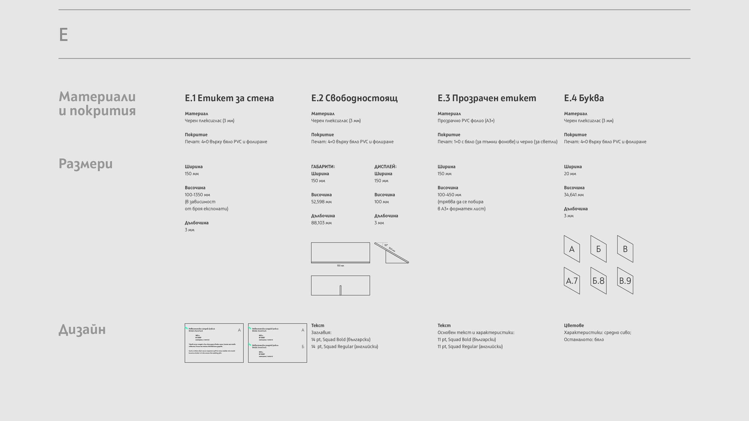 Стандарт за употреба на визуалните идентичност и комуникация на територията на музея. Съдържа цялостна графична концепция (определяне на стиловите изисквания към материалностите, типографията, цветовите решения, композициите).