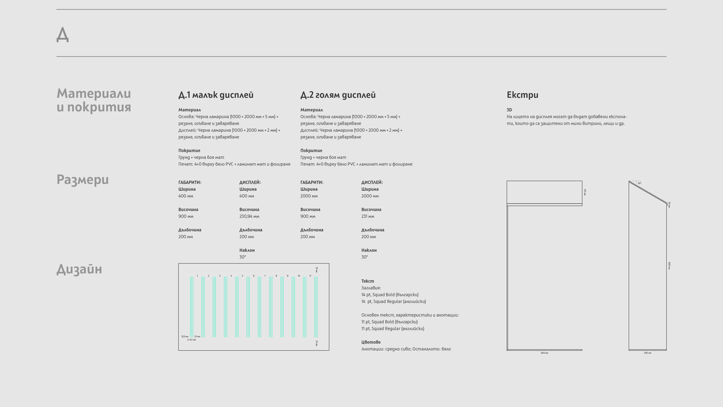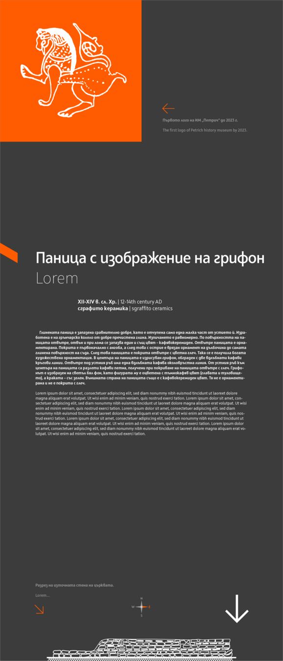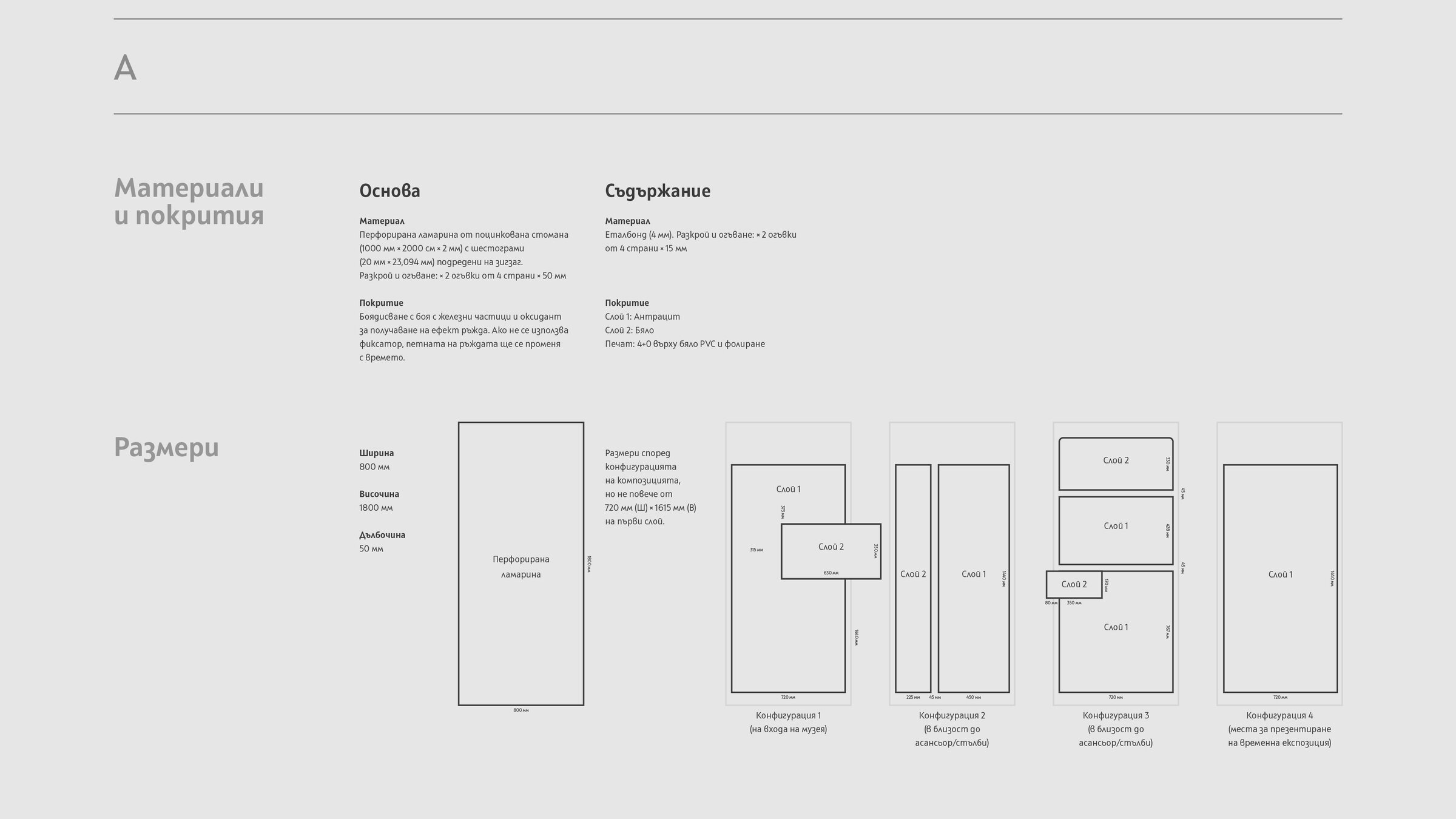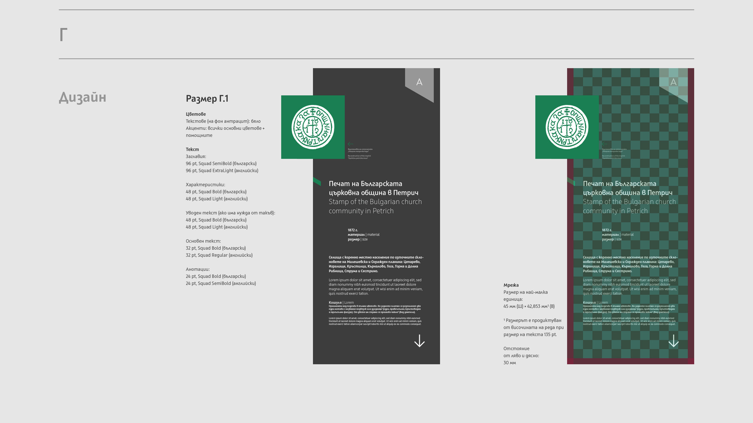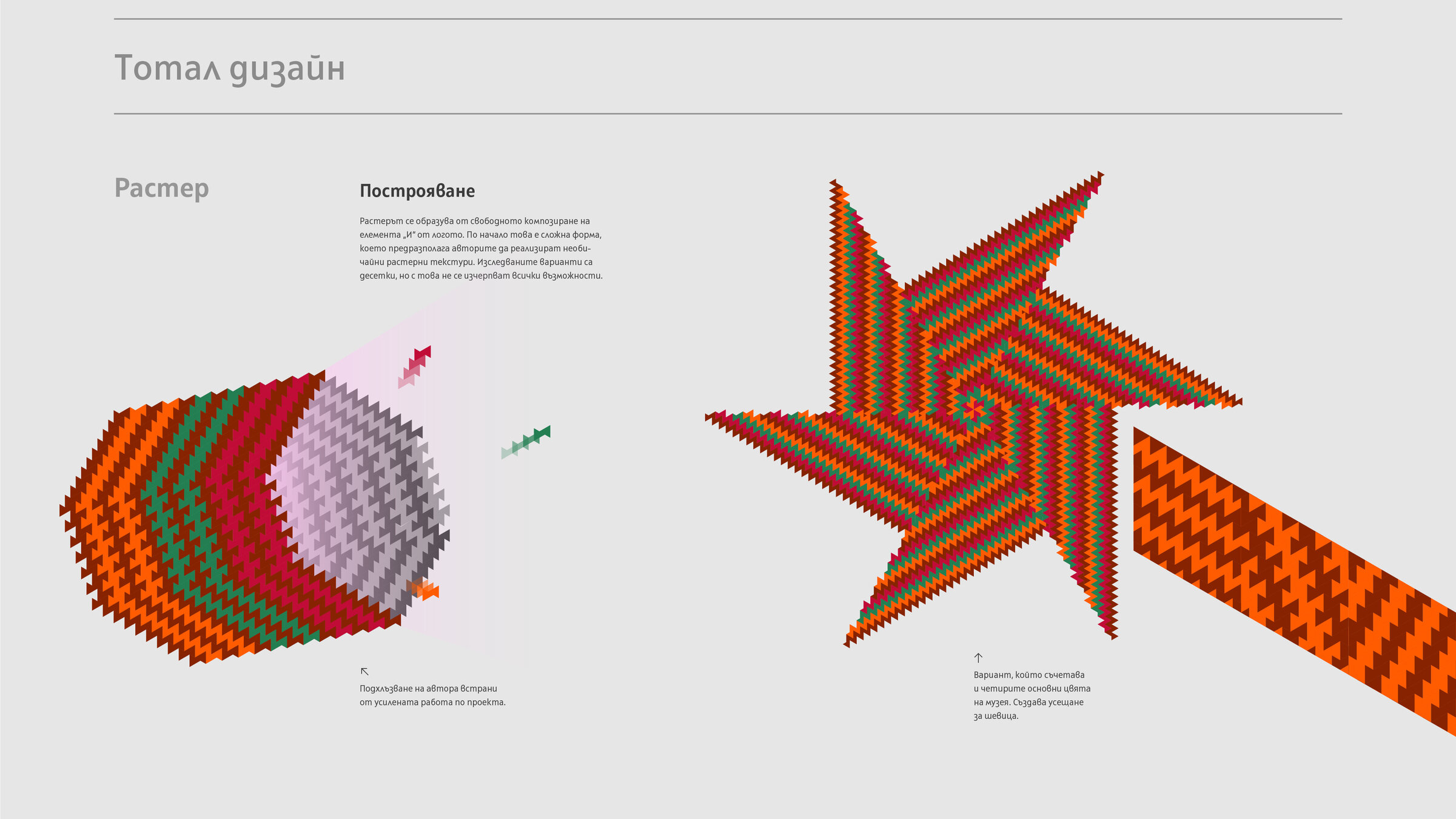Стандарт за употреба на визуалните идентичност и комуникация на територията на музея. Съдържа цялостна графична концепция (определяне на стиловите изисквания към материалностите, типографията, цветовите решения, композициите).