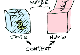 - Actually just a concept- encapsulates `Just` and `Nothing` data types.