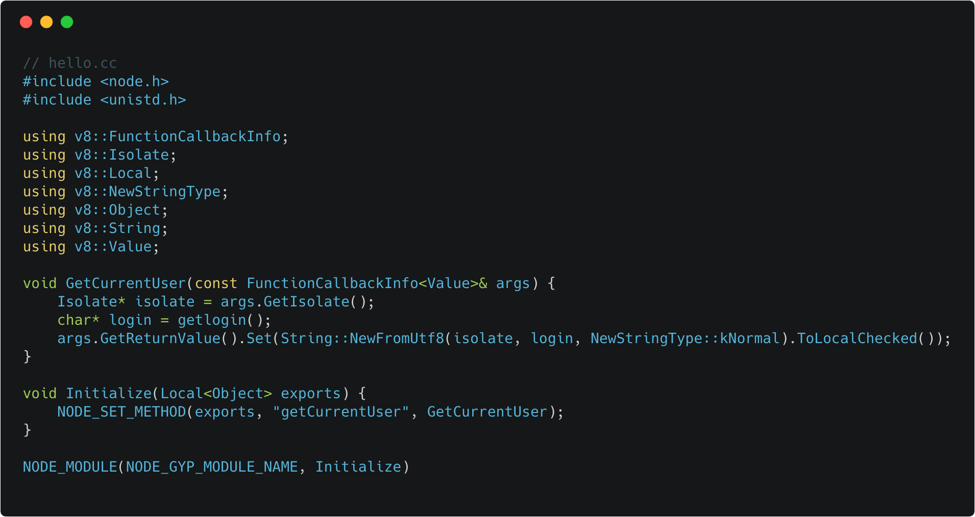 Dynamically-linked shared objects, written in C++, that can be loaded into Node.js using the require() function, and used just as if they were an ordinary Node.js module NodeJS Doc - C++ Addons