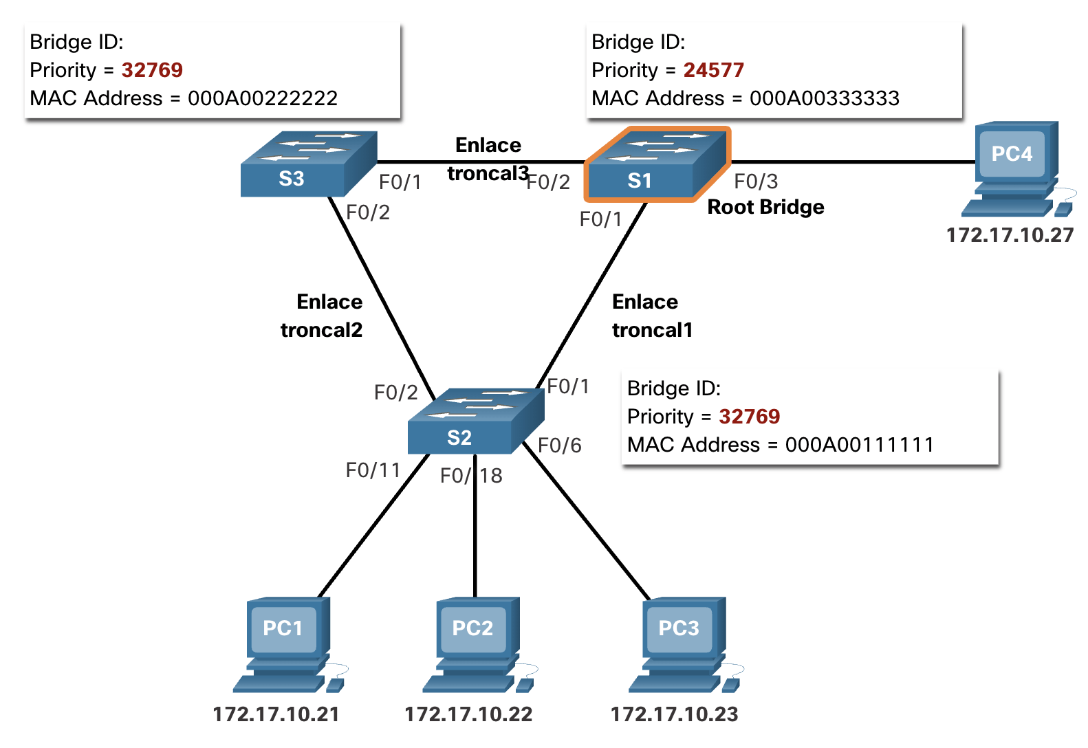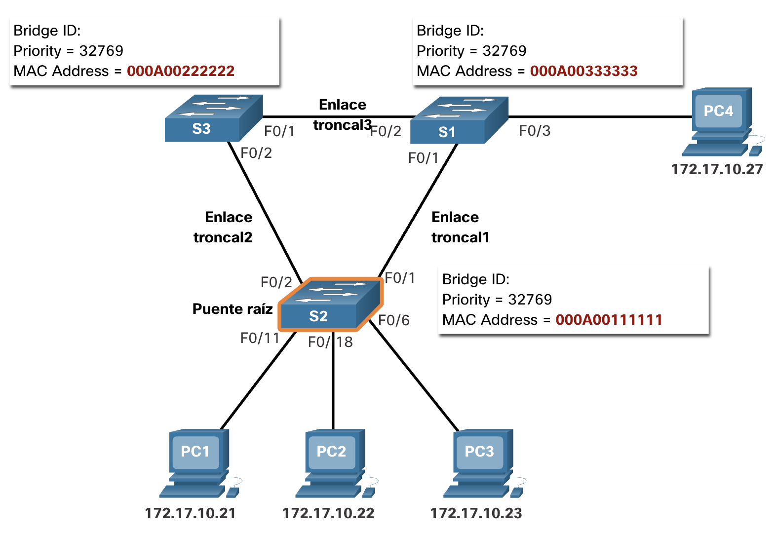 BID default es 32769, se determina el puente raíz por el MAC mas bajo.