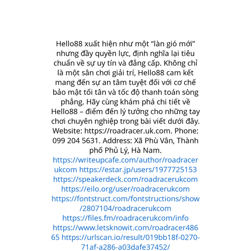 Website: https://roadracer.uk.com. Hello88 xuất hiện như một “làn gió mới” nhưng đầy quyền lực, định nghĩa lại tiêu chuẩn về sự uy tín và đẳng cấp. Không chỉ là một sân chơi giải trí, Hello88 cam kết mang đến sự an tâm tuyệt đối với cơ chế bảo mật tố