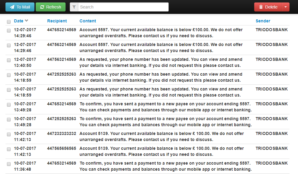 UK_UNARRANGED_OVERDRAFT (19, 1, true, "Account in unarranged overdraft");SMS