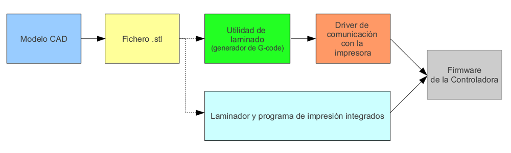 Básicamente es una máquina de control numérico (CNC) de tres ejes y un extrusor