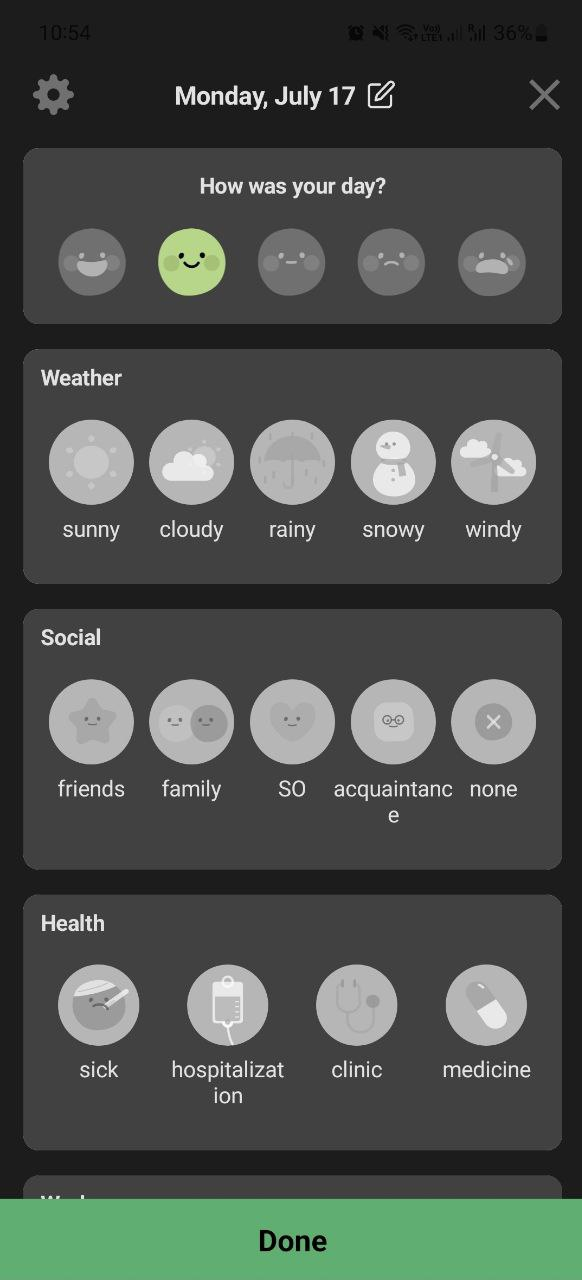 Cute as hell mood and wellbeing tracker, journaling tool.